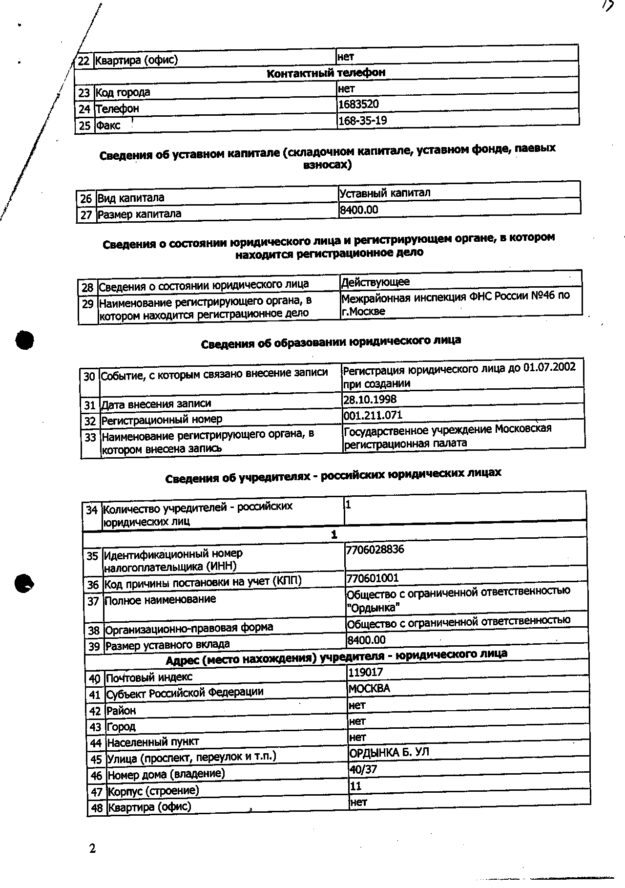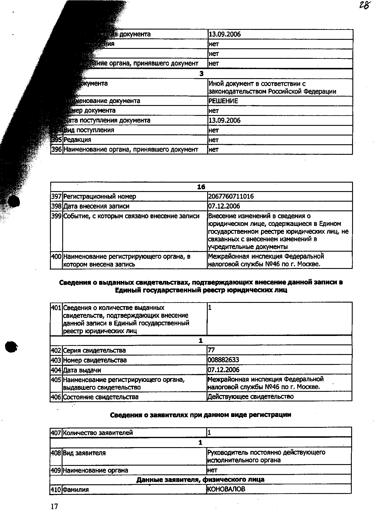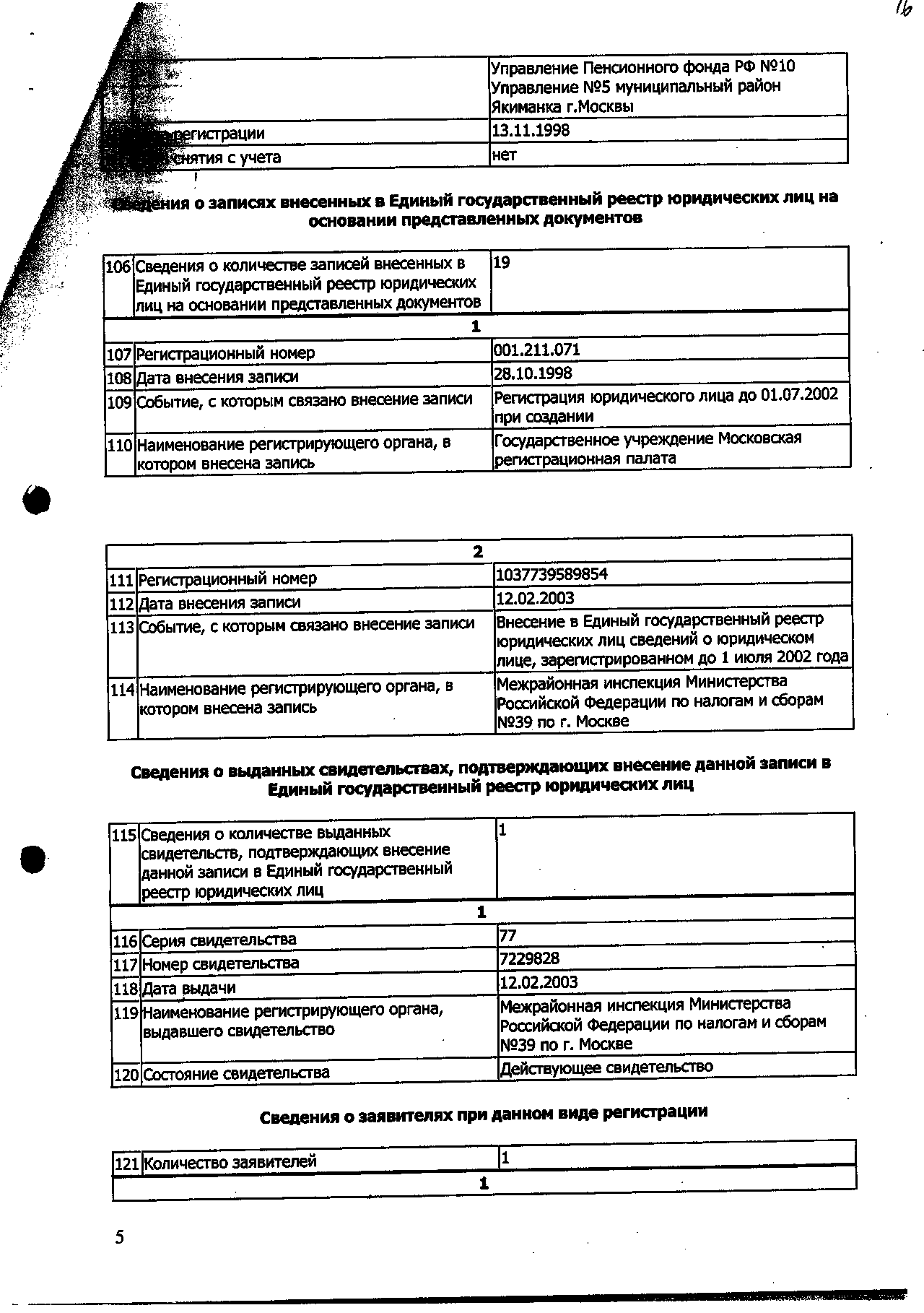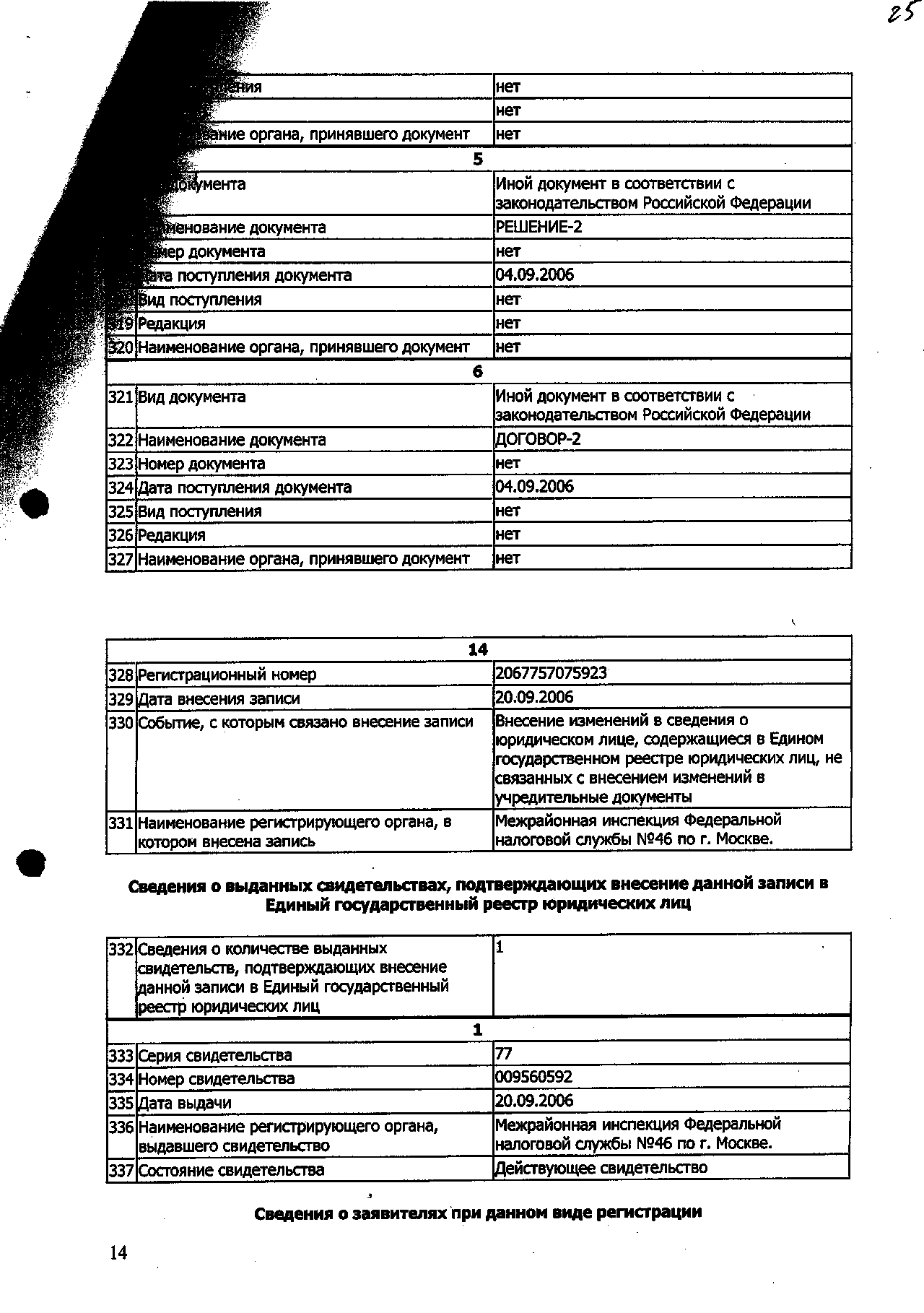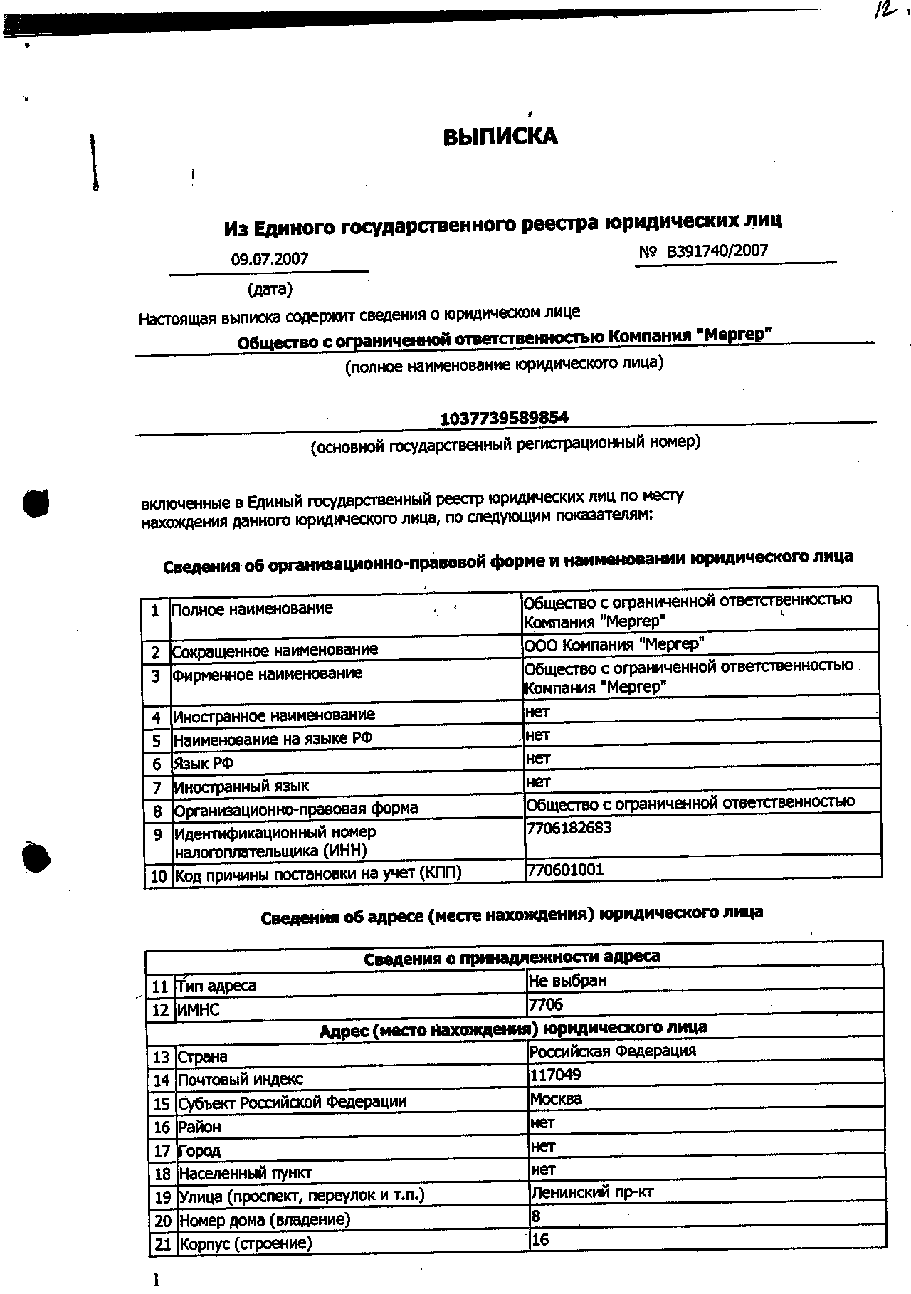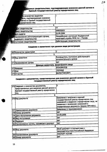 Выписка из Единого государственного реестра юридических лиц.