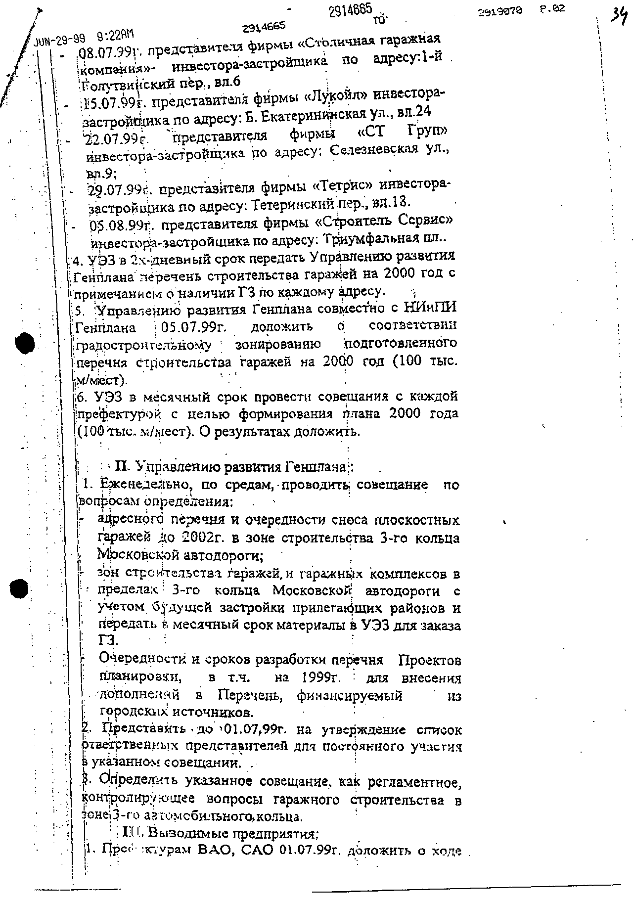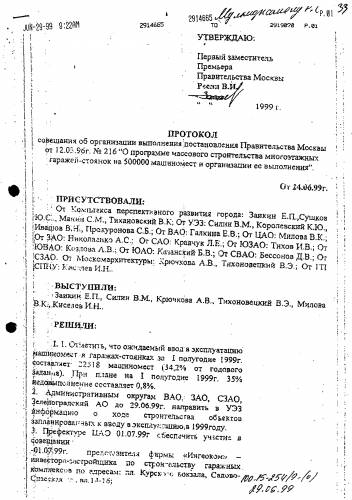 Протокол совещания об организации выполнения постановления Правительства Москва от 12.08.96 №216