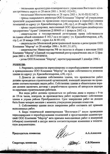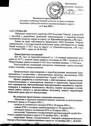 Выписка из протокола №70 заседания межведомственной комиссии по использованию жилищного фонда Восточного административного округа от 05.05.05
