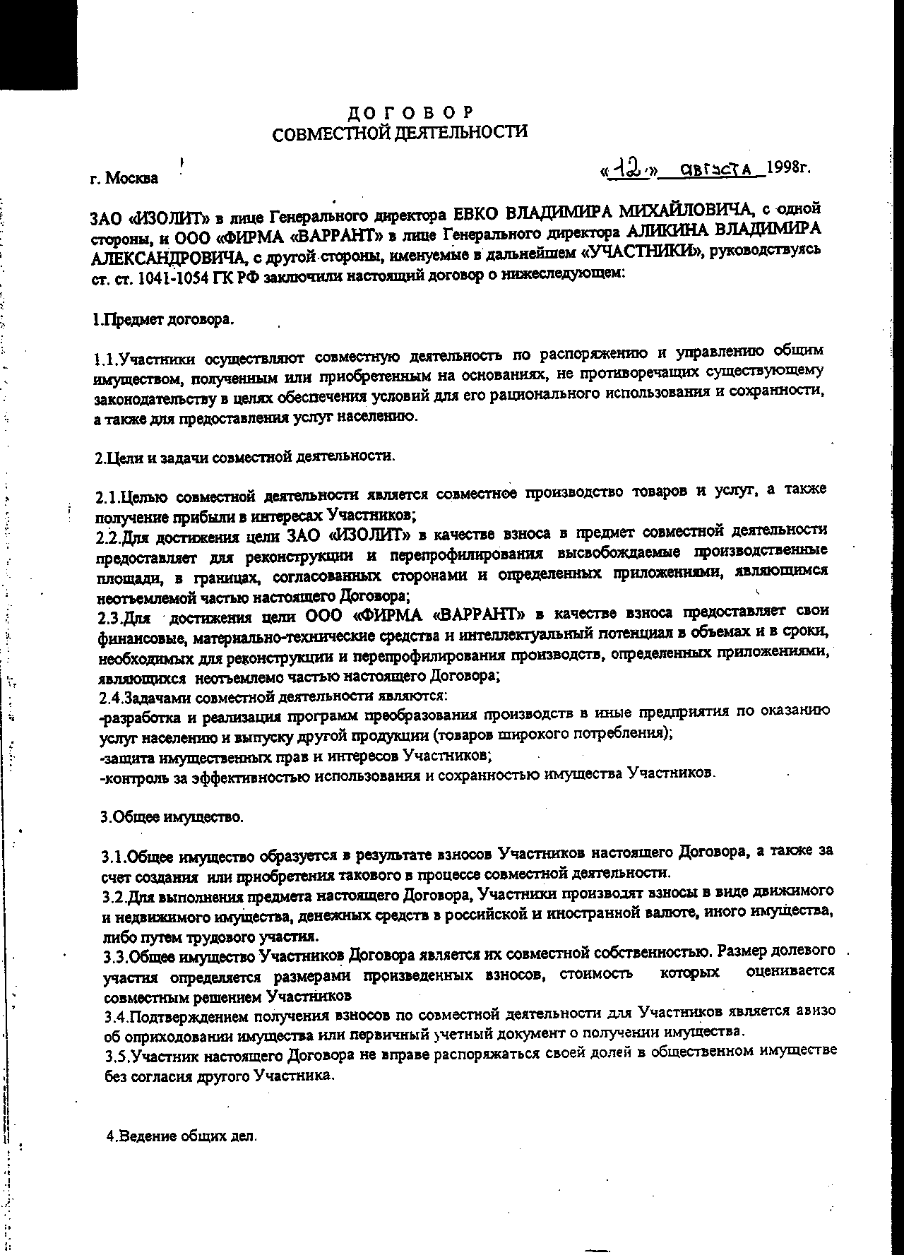 Договор совместной деятельности
